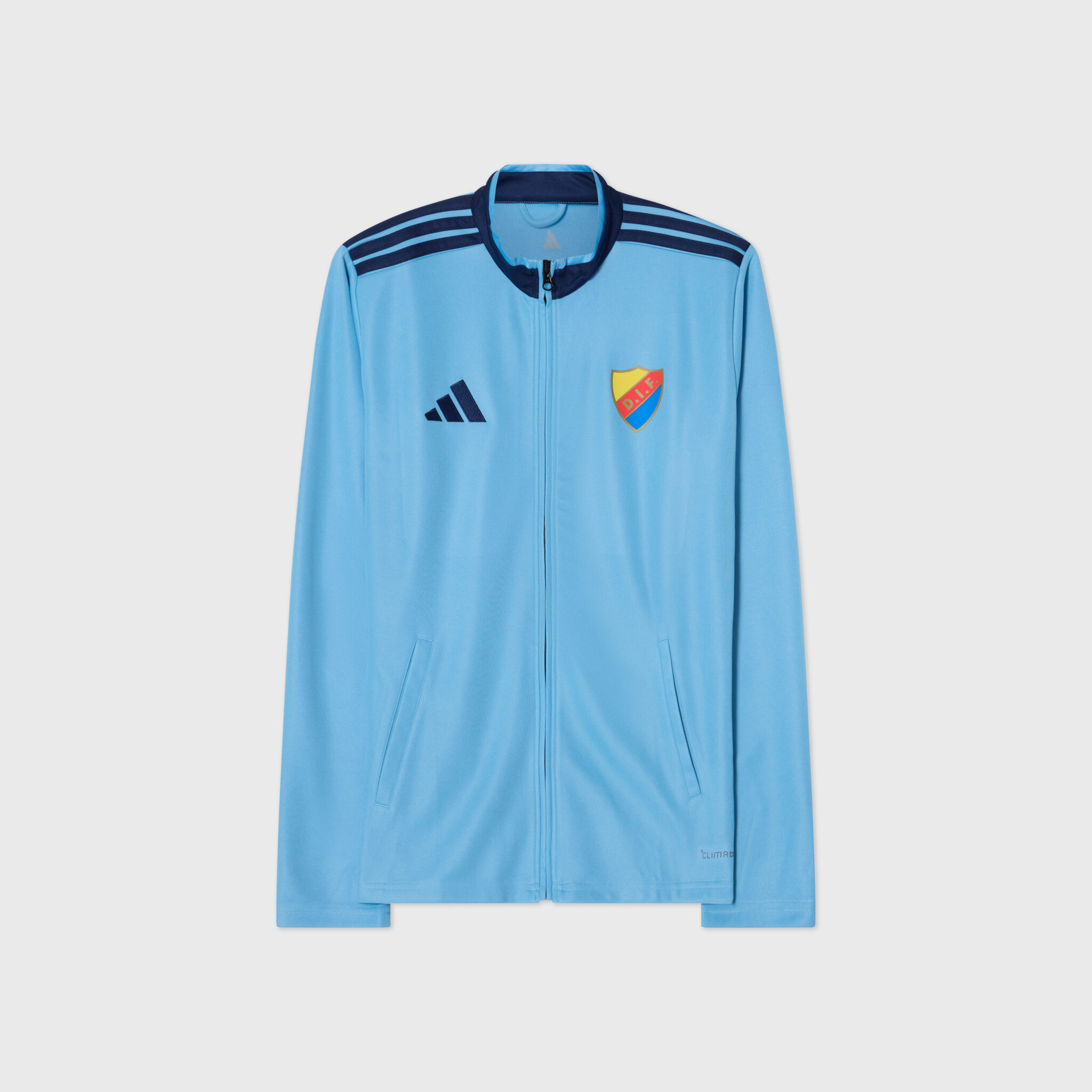 Adidas officiella hemma-inmarschtröja 2026 är en funktionell och bekväm långärmad ziptröja med hel dragkedja, praktiska sidofickor och en stilren ståkrage. Ryggen pryds av ett stort tryck med texten “Stockholmslaget” samt en klassisk sköld på bröstet.