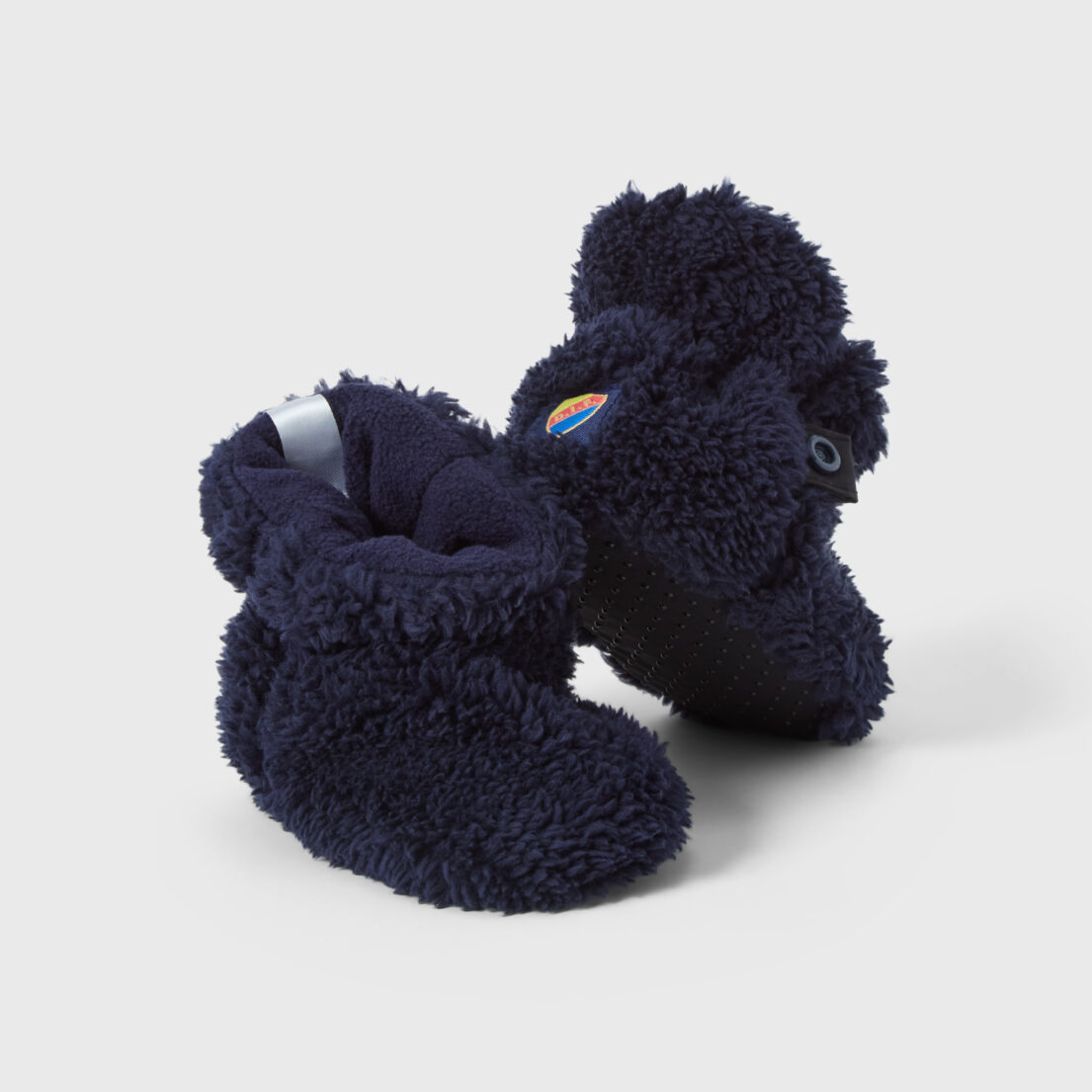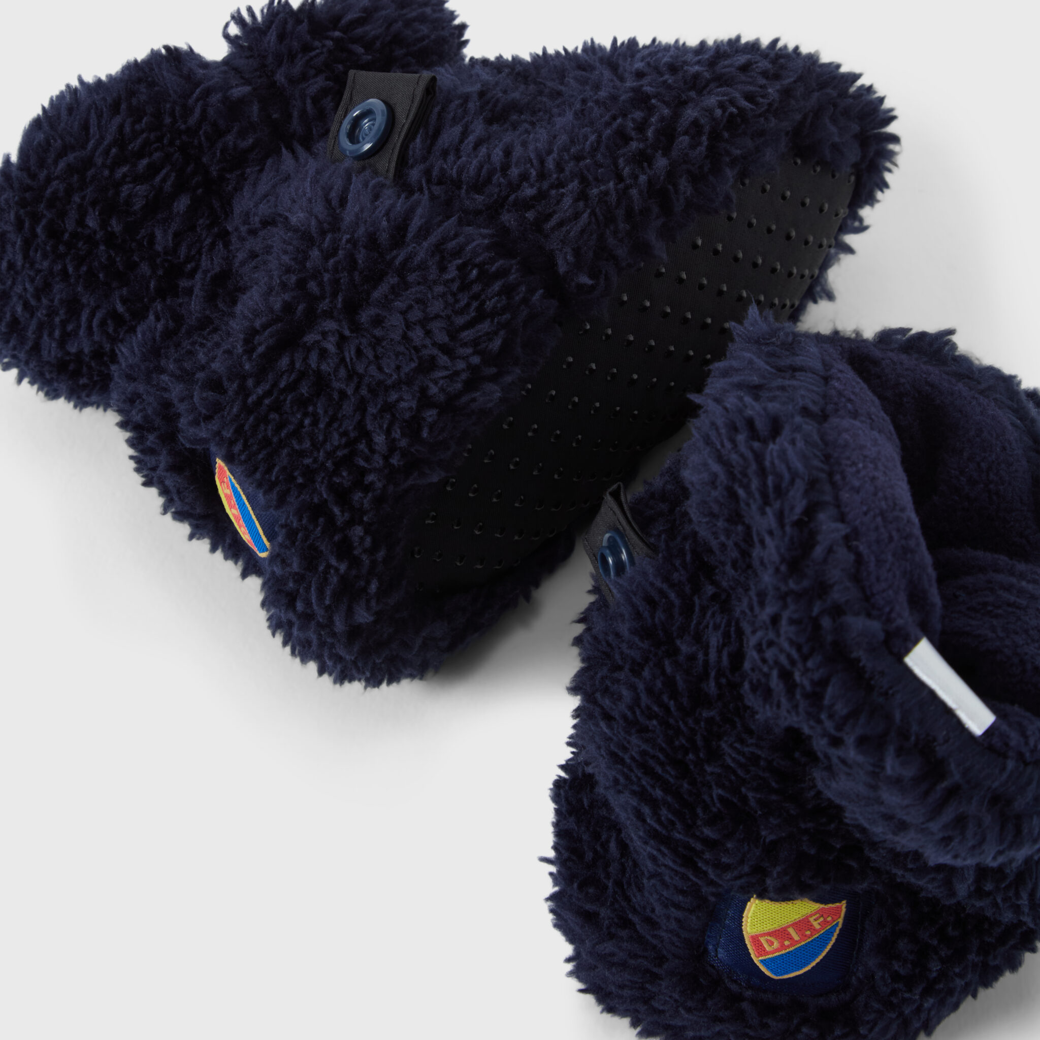 Håll små fötter varma och bekväma med våra mjuka babytofflor i fleece. Tillverkad i slitstark och värmande polyester som passar lika bra inomhus som utomhus. Undersidan är försedd med halkskydd i form av små silikonprickar för extra säkerhet vid de första stegen eller när barnet rör sig runt. Tofflorna har även en knappfunktion som gör att de kan fästas ihop, vilket minskar risken att de kommer bort när de inte används.