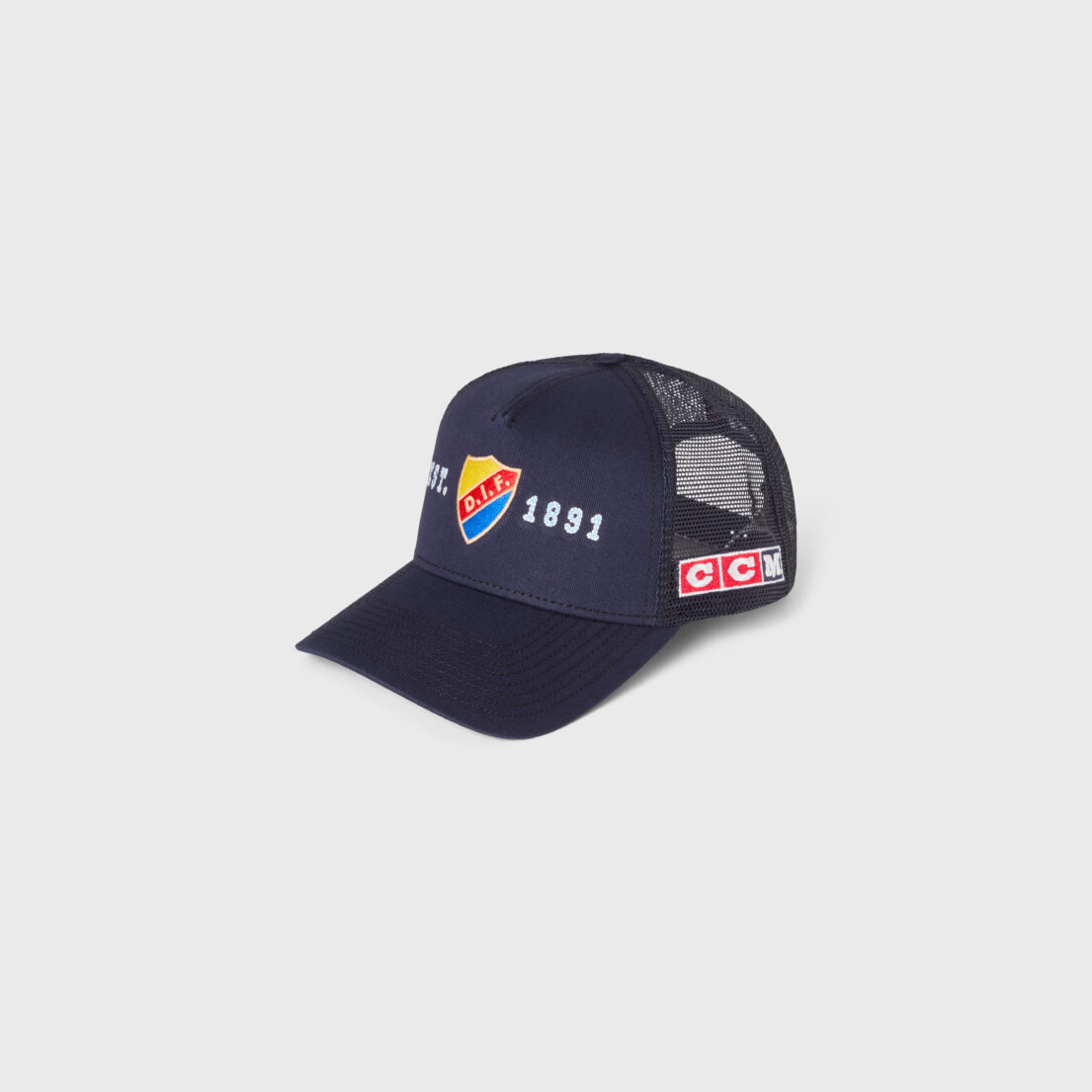 Marinblå truckerkeps från CCM med bred passform och ventilerande mesh-paneler som håller dig sval. Framtill pryds kepsen av en stilren broderad “Est 1891”-text i ljusblått och Djurgårdsskölden. Utrustad med justerbar plastrem baktill som ger en flexibel och bekväm passform.