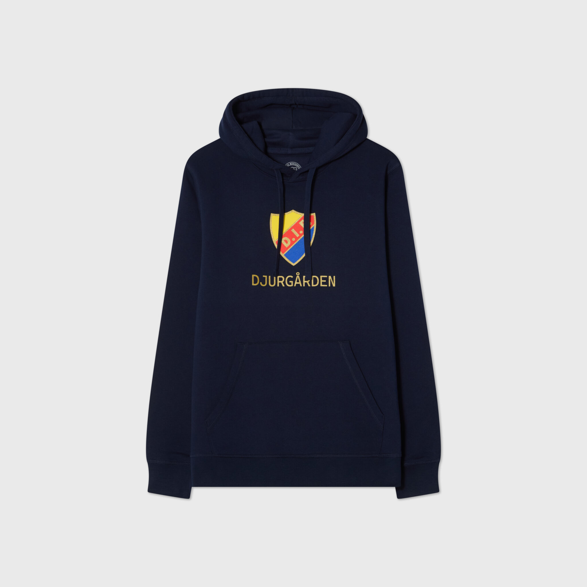 En stilren och tidlös hoodie som kombinerar komfort, funktion och stark klubbkänsla. Den har en justerbar luva, en praktisk magficka samt pryds av den ikoniska Djurgårdsskölden med texten “Djurgården” i guld undertill.