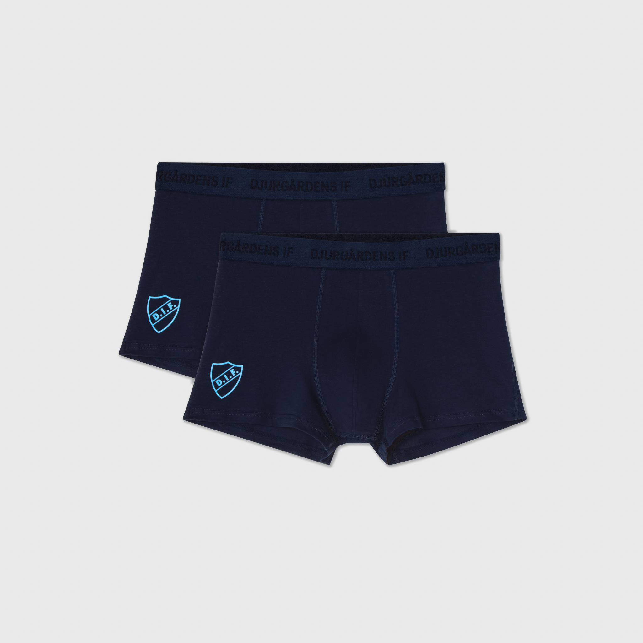 Stilrena och bekväma boxer briefs i 2-pack med elastisk midjeresår prydd av “Djurgården IF”-text samt tryckt outlinesköld i ljusblått på höger ben. Tillverkade i mjuk och stretchig bomullsblandning för optimal passform och rörelsefrihet.