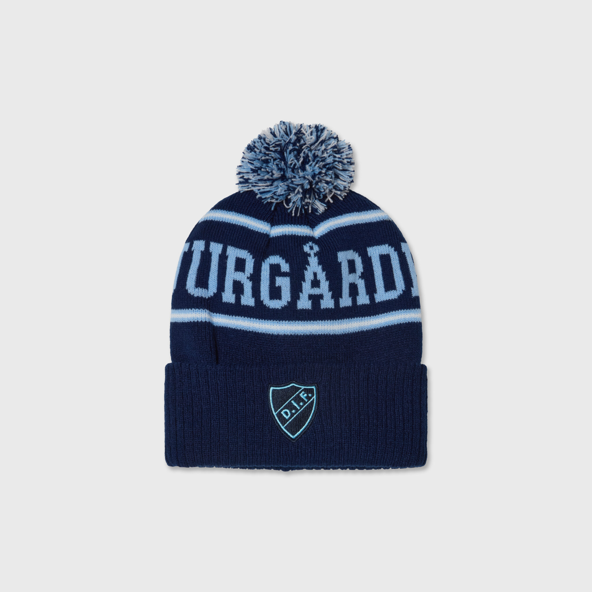 Vår bästsäljande POM-mössa är tillbaka i en uppdaterad design – nu med fler ljusblå detaljer för en fräschare look. Mössan har en broderad outlinesköld framtill och en tydlig “Djurgården”-text som löper runt hela modellen. Perfekt för kyligare dagar när du vill kombinera värme med stil och tydlig lagkärlek.