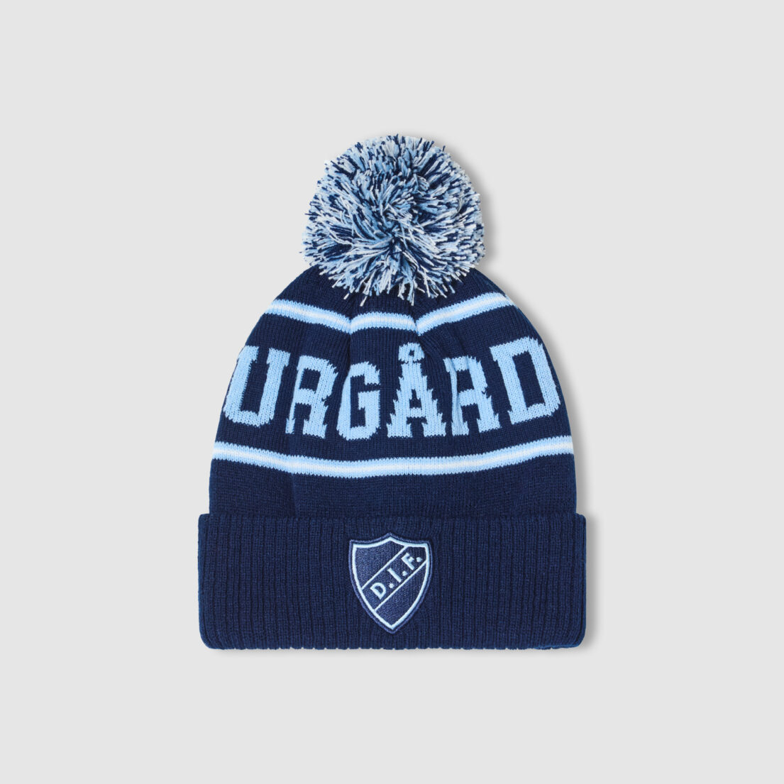 Vår bästsäljande POM-mössa är tillbaka i en uppdaterad design – nu med fler ljusblå detaljer för en fräschare look. Mössan har en broderad outlinesköld framtill och en tydlig “Djurgården”-text som löper runt hela modellen. Perfekt för kyligare dagar när du vill kombinera värme med stil och tydlig lagkärlek.