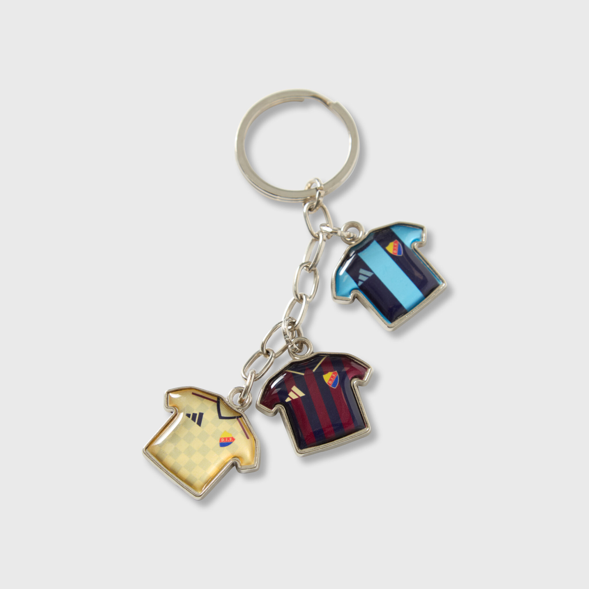 Lägg till en sportig touch på dina nycklar med denna nyckelring med årets tre officiella matchtröjor i en detaljrik design. Ett roligt och unikt sätt att visa din passion för Djurgården, samtidigt som du håller koll på dina nycklar!