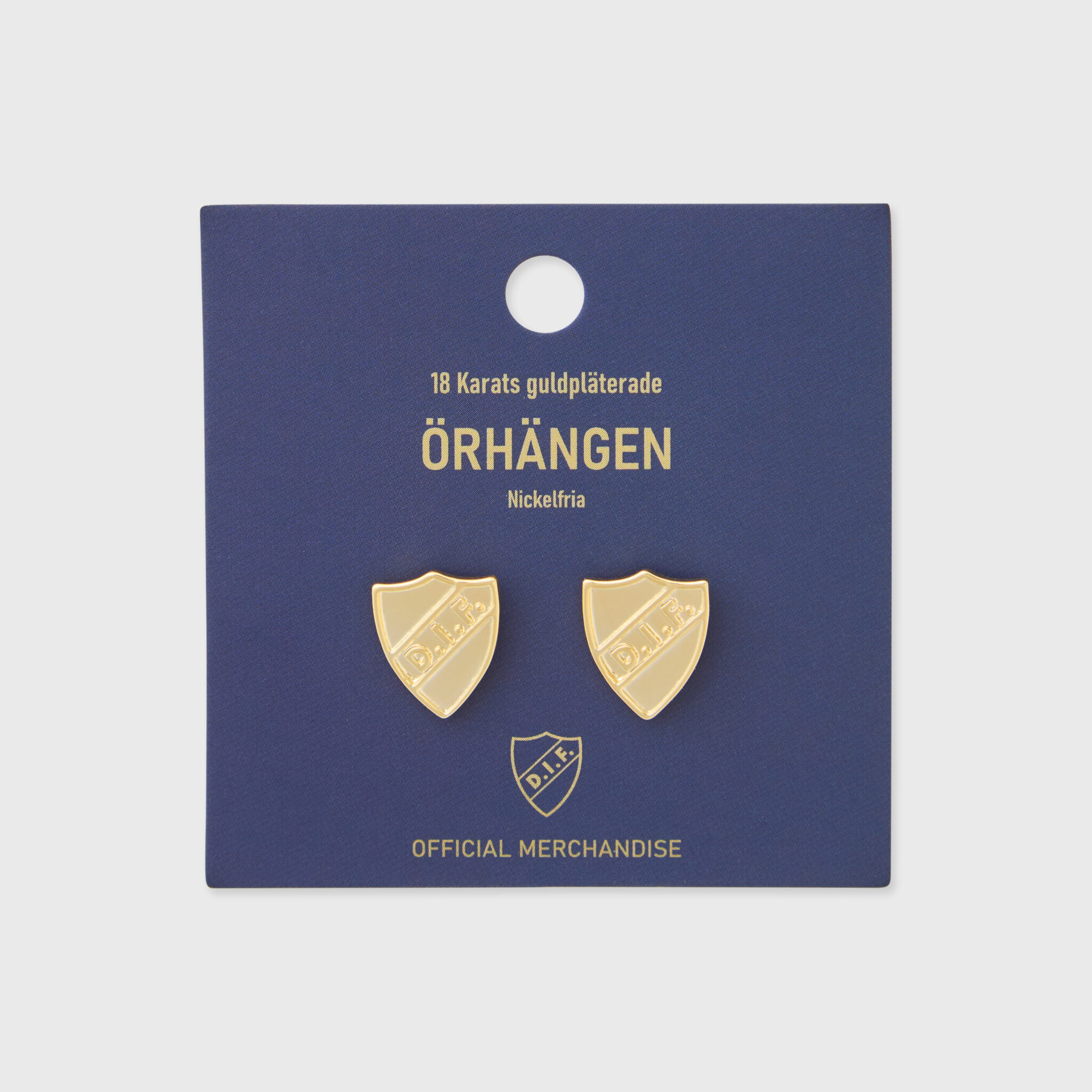 Djurgårdsörhängen med eleganta sköldar i 100% mässing med 18K guldplätering. Stilfull accessoar för att visa ditt stöd med klass och klubbkärlek!