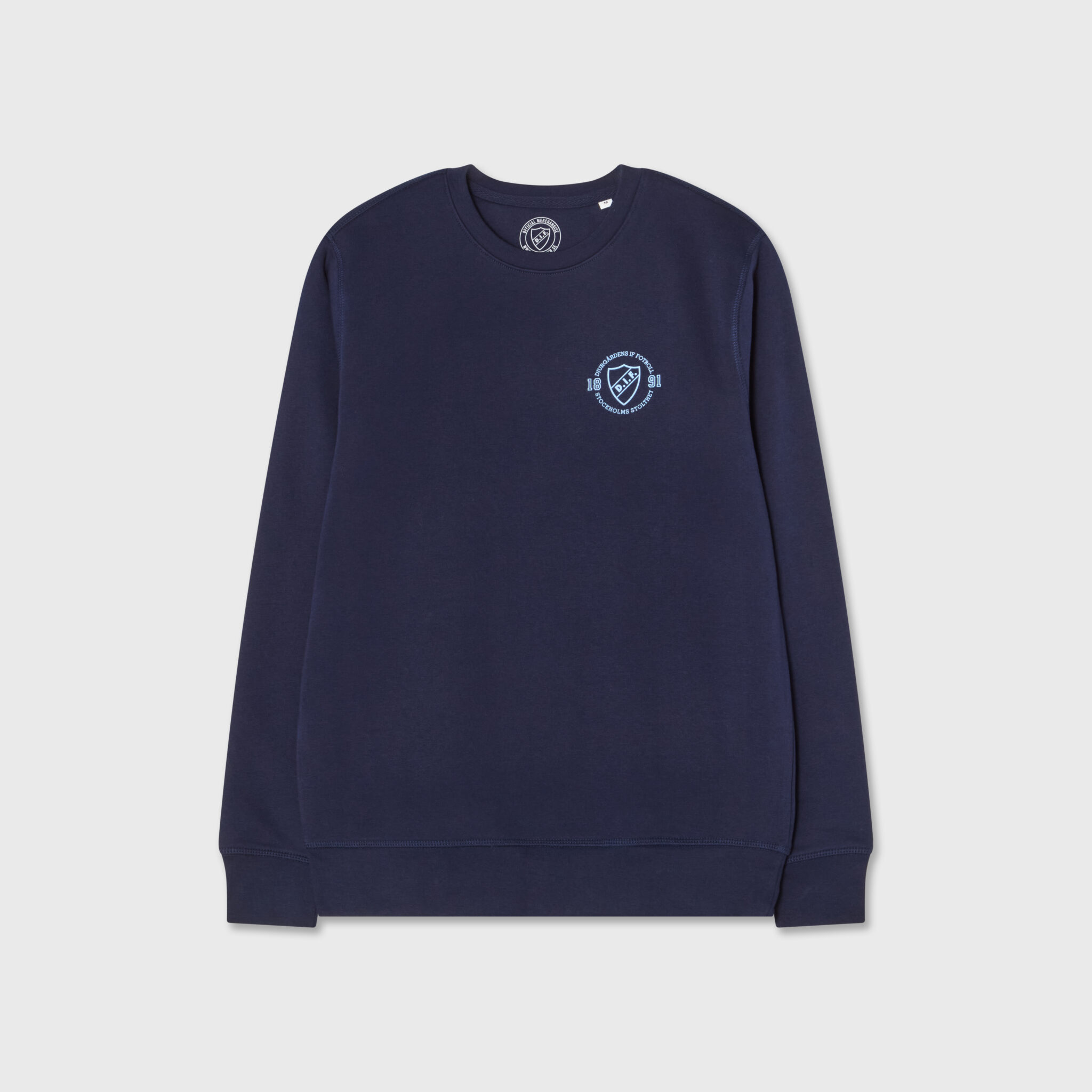 Klassisk marinblå sweatshirt med en ljusblå Djurgården Fotbolls logga på bröstet. Tillverkad i mjuk och slitstark bomull som ger hög komfort hela dagen och passar perfekt både för matchdagar och till vardags.