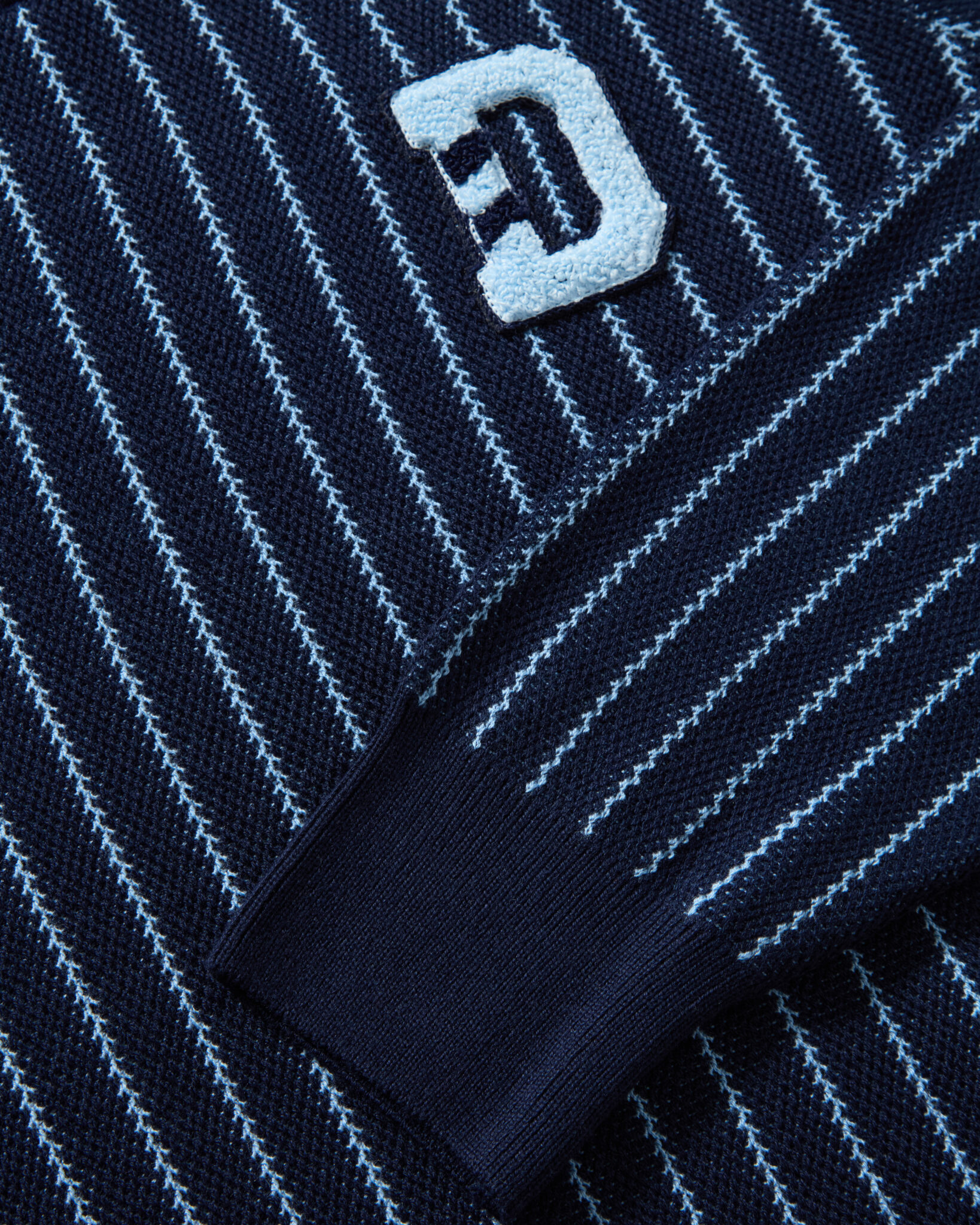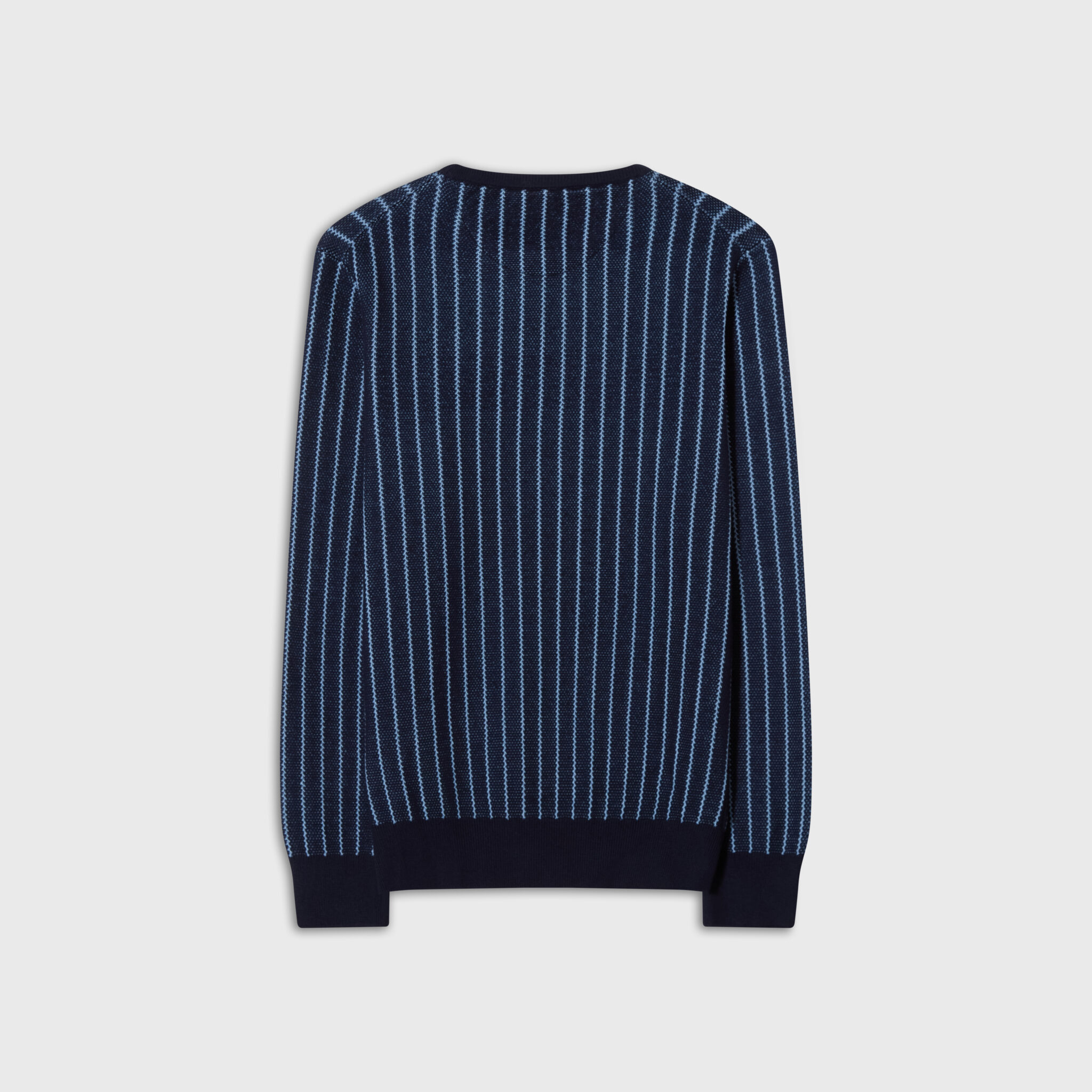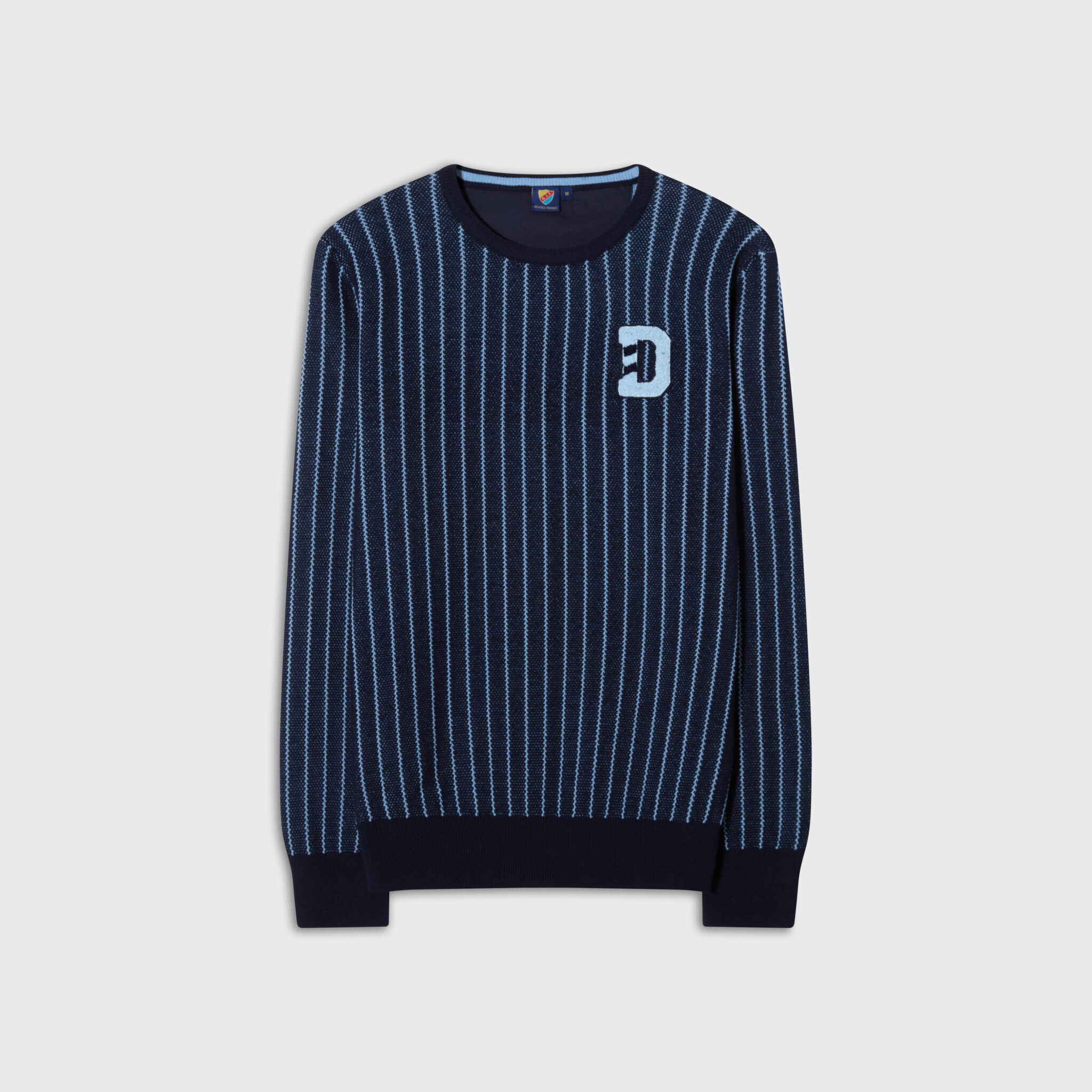 Sweatshirt Pinstripe D är en tidlös stickad tröja i marinblått, tillverkad i 100% mjuk bomull som ger en behaglig känsla mot huden och en naturlig andningsförmåga. Den subtila pinstripe-strukturen skapar ett elegant och sportigt uttryck, medan den stickade konstruktionen ger tröjan en exklusiv känsla med avslappnad passform.