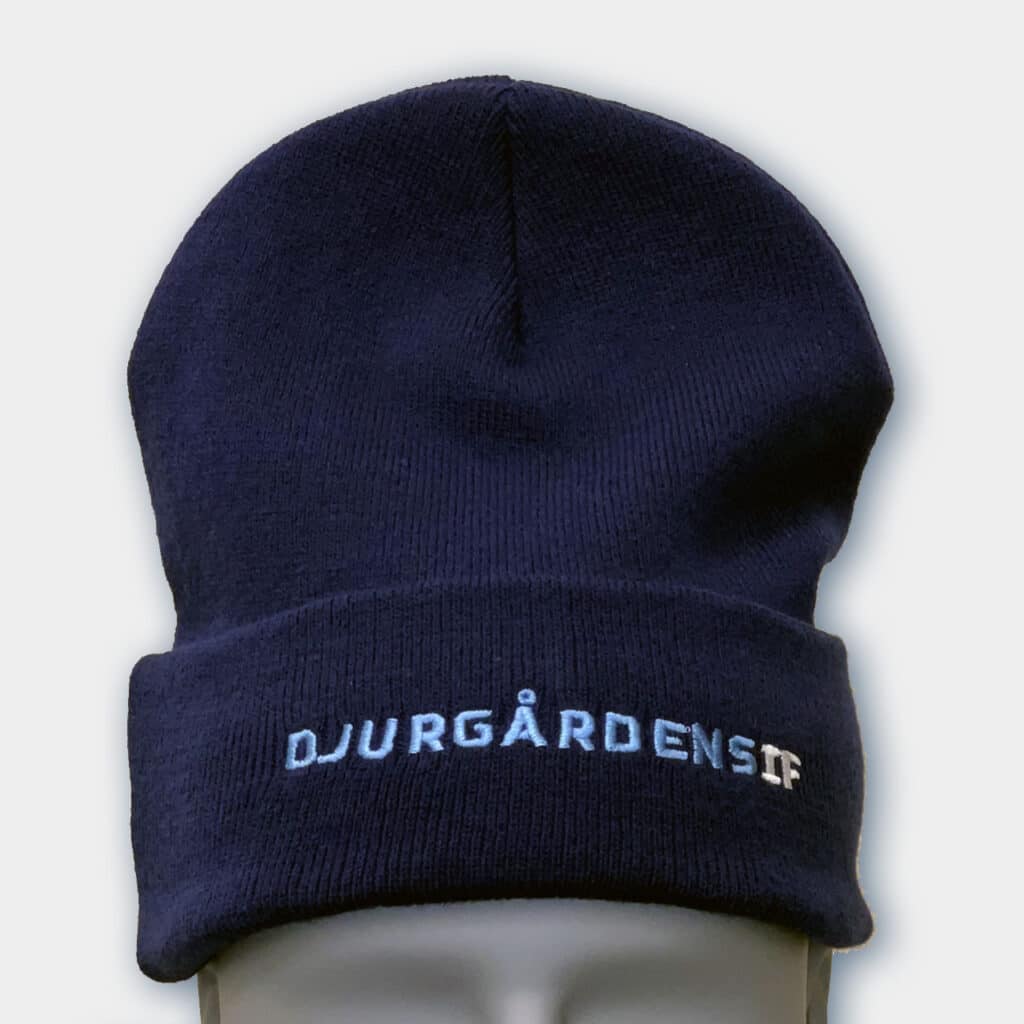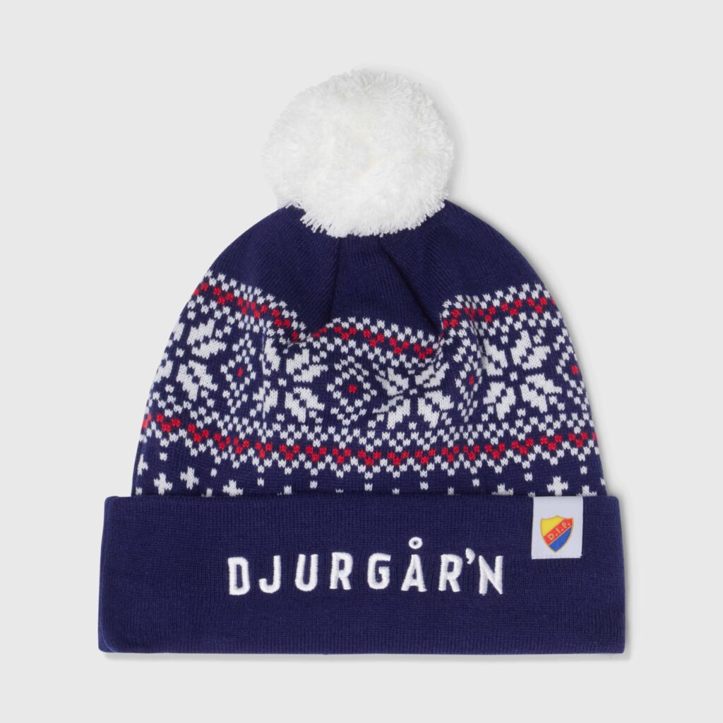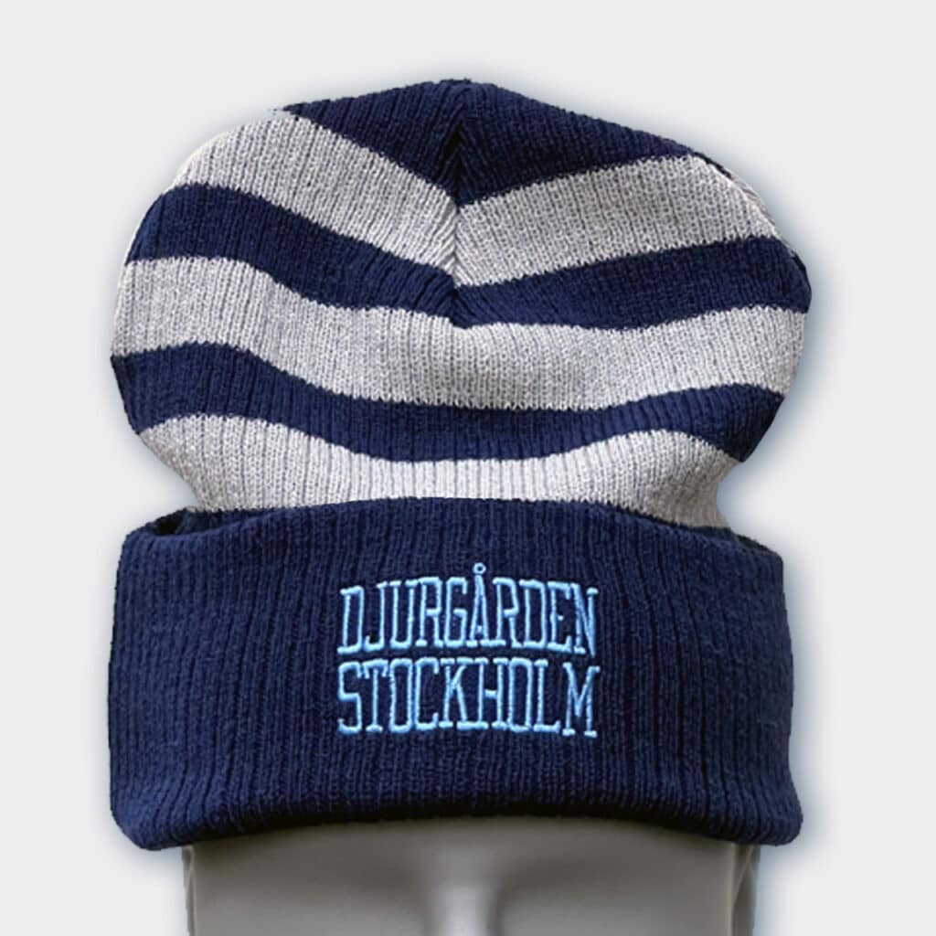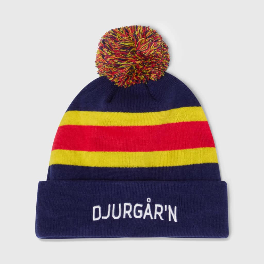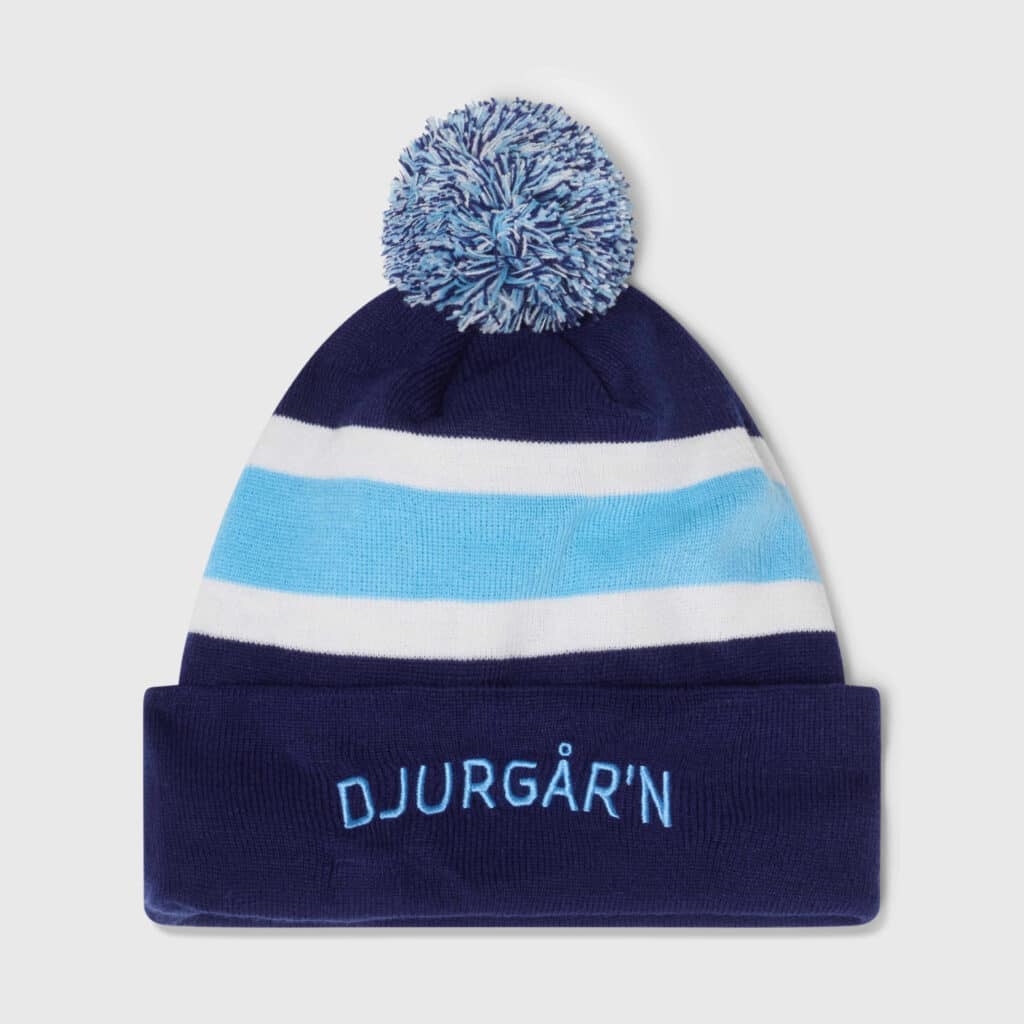 Randig mössa från CCM med uppvikt kant, en charmig tofs i blå nyanser och en broderad “Djurgår’n”-text framtill. Tillverkad av mjuk akryl och fodrad med värmande fleece, som ger både ett pålitligt skydd mot kylan och en extra skön komfort.