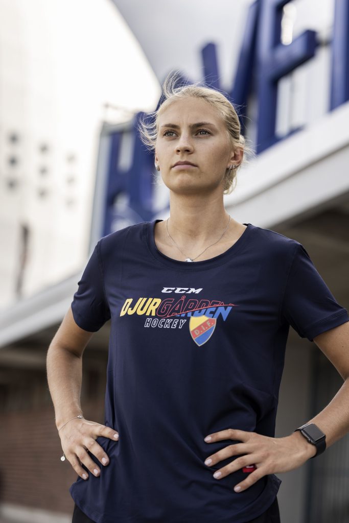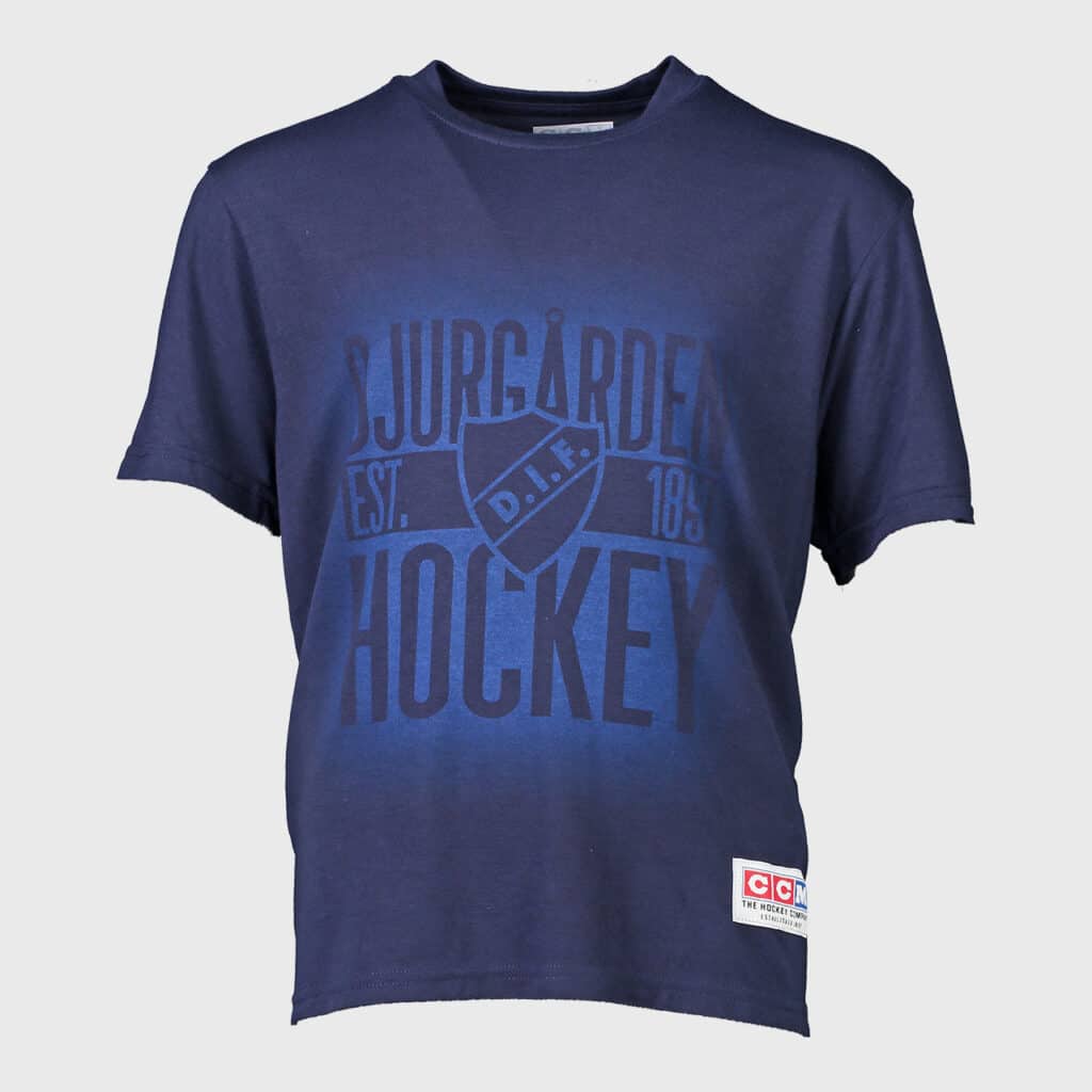 Mjuk och tunn hockeytränings-T-shirt från CCM med stilrent Djurgården-tryck, den klassiska Djurgårdsskölden och en vit CCM-logga. Tillverkad i lätt och fukttransporterande material som är utformat för att hålla dig sval och bekväm genom hela träningspasset.